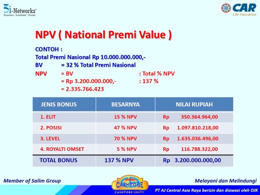 Adalah Bonus Mengajak/Merekrut Nasabah Baru. Sekali merekrut nasabah baru berhak bonus selama 3 tahun (36x) dengan besaran bonus sesuai pilihan premi nasabah baru.